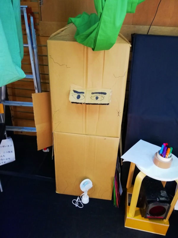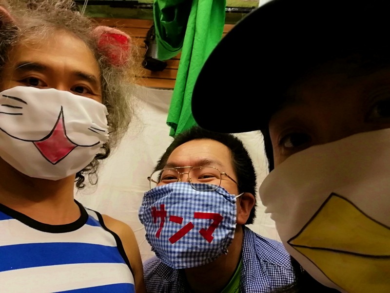 フェイスシールドも自作して、テープで顔描いて配ったりしました。